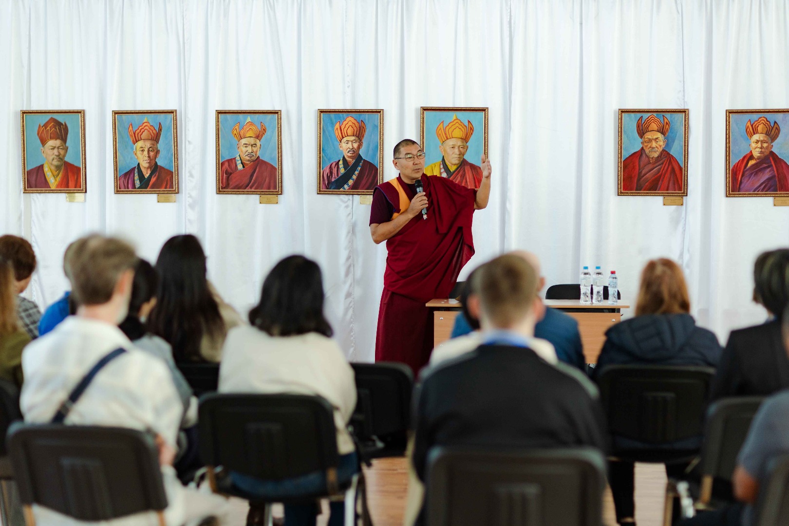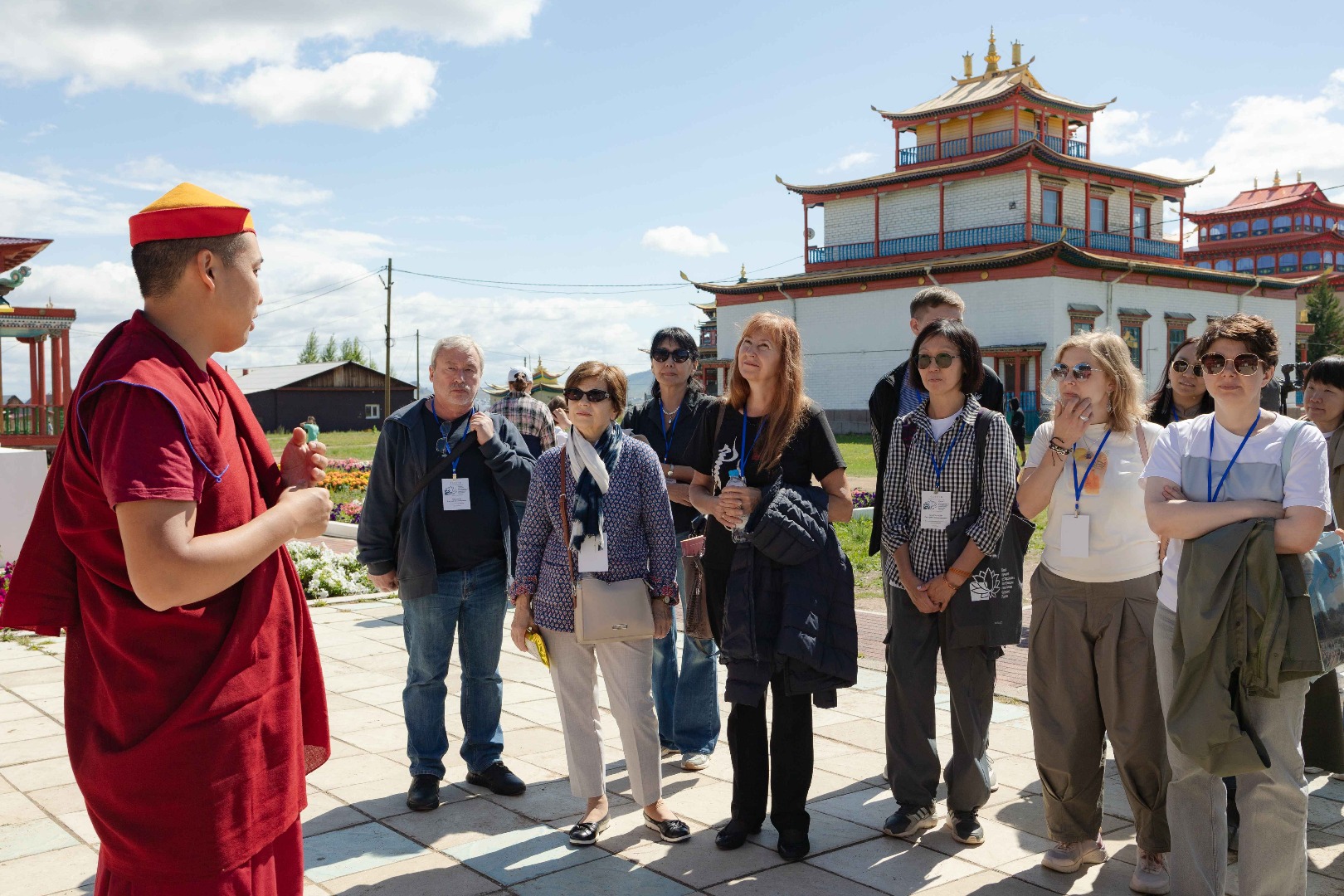 Утро началось с визита в Иволгинский дацан «Хамбын Хурээ» — резиденцию главы буддистов России XXIV Пандито Хамбо ламы Дамбы Аюшеева. Участники смогли не только познакомиться с архитектурой и святынями главного буддийского центра страны, но и прослушали лекцию доктора буддийской философии, ректора Буддийского университета «Даши Чойнхорлин» Габжа Дымбрыла Дашибалданова. Он рассказал об истории буддизма и его развитии в России, а также для участников провели экскурсию по музею Иволгинского дацана, рассказали о Пандито Хамбо-ламе XII Даши-Доржо Итигэлове и показали открывшийся в прошлом году Цогчен дуган.