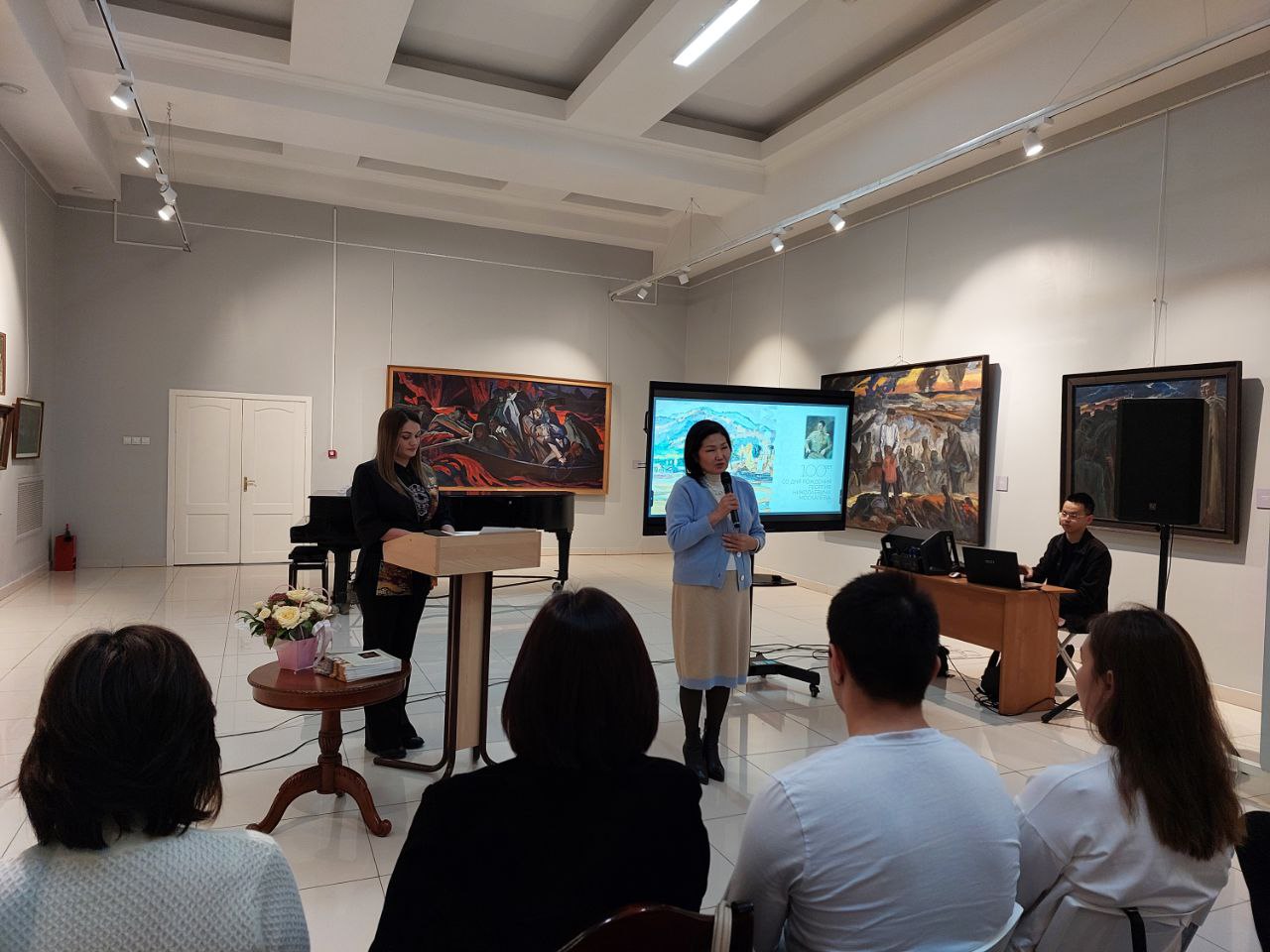 Завершился вечер лекцией Российского общества «Знание». Кандидат исторических наук, доцент Бурятского государственного университета Алтына Шойдонова представила доклад «Защитник и творец: невероятная жизнь Георгия Москалёва», рассказав о судьбе художника, для которого воинский и творческий подвиги стали единым целым.