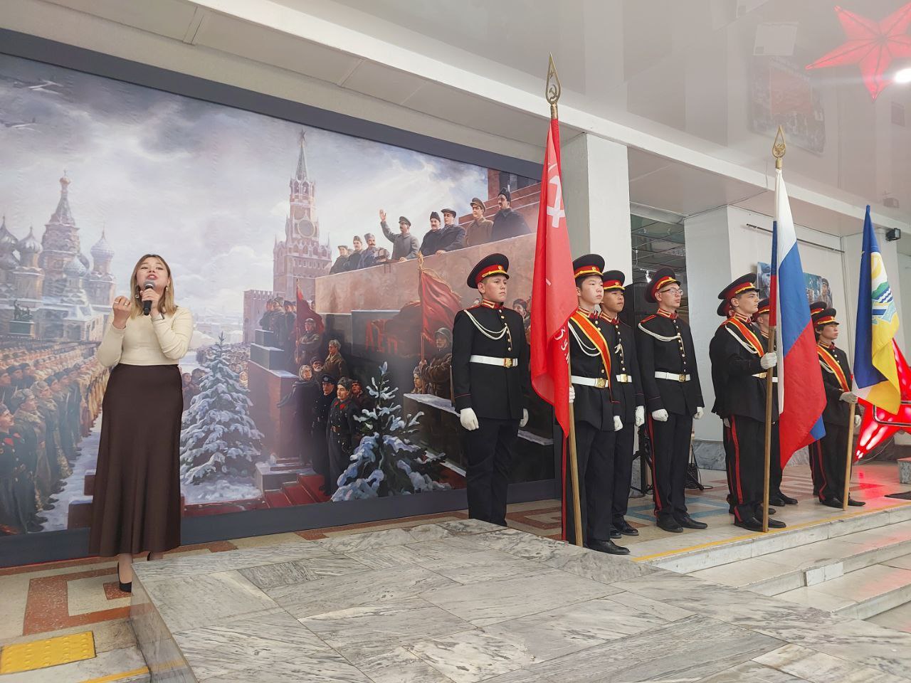 Торжественная церемония началась с внесения флагов России, Бурятии и Знамени Победы знаменной группой учащихся Хоринской средней школы № 2. В зале прозвучали гимны и песня «Священная война». Атмосфера в зале сразу наполнилась духом памяти и уважения к подвигу героев.