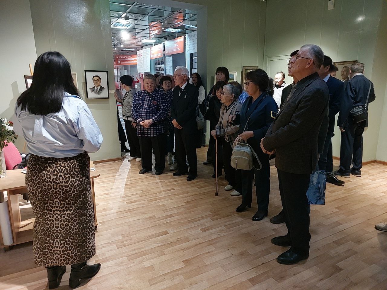 После официальной части гости переместились в экспозиционный зал, где представлены ранние полотна, жанровые сцены, пейзажи Байкала и портреты, исполненные с глубокой человечностью и вниманием к характеру. Экскурсию по выставке провела заместитель директора по научной работе и выставочной деятельности Национального музея Базарова Татьяна.