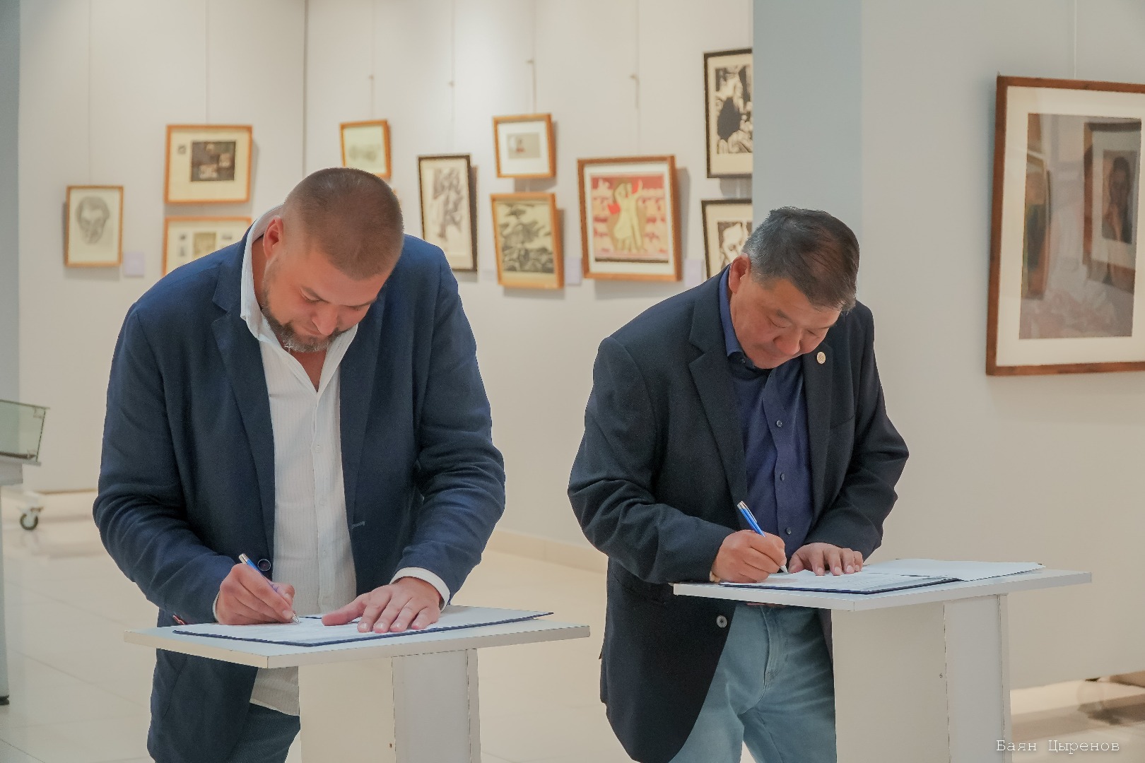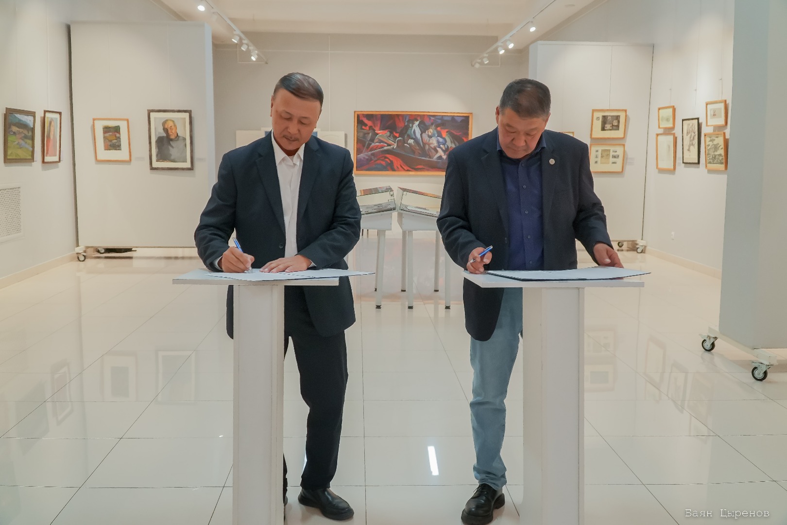 26 сентября в зале Художественного музея имени Ц.С. Сампилова, среди экспозиции «Война и мир Георгия Москалева», состоялась торжественная церемония подписания соглашений о сотрудничестве. Событие стало важным шагом в расширении культурного взаимодействия: «Академическая дача» имени И.Е. Репина официально открывает филиалы в арт-резиденциях Бурятии – «Баргуджин Токум» и «Ягдаг».