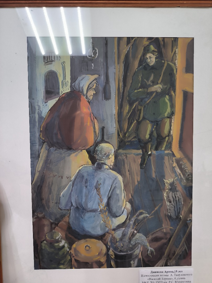 Иллюстрации к поэме А.Т. Твардовского "Василий Тёркин" – проникновенные работы выпускниц школы Арины Дашиевой и Марии Бушуевой.