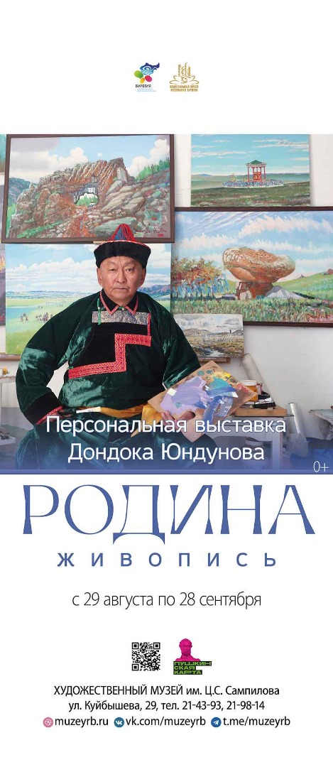 С 29 августа в Национальном музее Республики Бурятия в Художественном центре будет работать персональная выставка Дондока Юндунова - «Родина». Дондок Юндунов – художник, воспевающий красоту родной природы. Выпускник Хабаровского педагогического института художественно-графического отделения, он сформировал уникальный пластический язык, в котором академическая школа органично сплелась с эстетикой и духовными традициями бурятского народа. Работы автора удивляют разнообразием цветовых решений и техникой исполнения, каждая работа позволяет ощутить живое дыхание времени и пространства. В своем творчестве художник воспевает природу в ее самых различных состояниях. Его работы обладают редким качеством – они не просто показывают, а позволяют «почувствовать»: воздух степи, тепло войлочной юрты, тишину леса. Он не повествует, а преображает реальность, возводя её в степень высокого искусства, где каждая деталь наполнена смыслом и красотой.