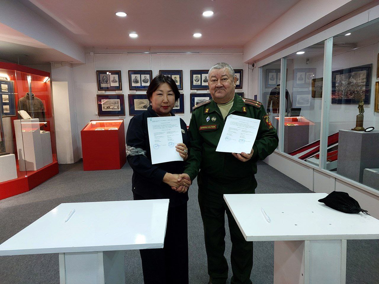 11 декабря в Музее истории Бурятии им. М. Н. Хангалова ГАУК РБ «Национальный музей Республики Бурятия» в лице директора Татьяны Бороноевой и РОО «Союз солдатских родителей Республики Бурятия" в лице председателя Виктора Поплевина, официально подписали соглашение о сотрудничестве.