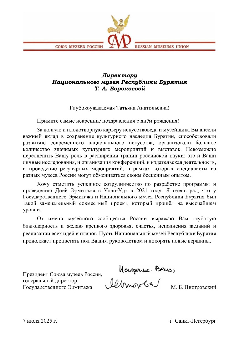 #Юбилей #НациональныймузейБурятии #БороноеваТА #Поздравление #МузейноеСообщество #ICOMRussia